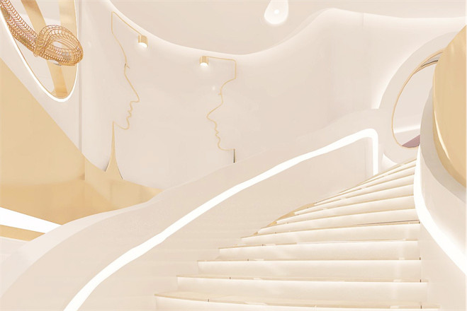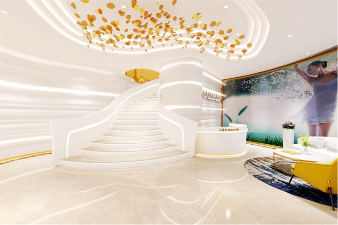 项目方案采用前卫时尚、简约现代的设计风格,以白色+金色为主色,贯穿空间每个角落,体现出素雅精致的高端品质,以“凤凰涅槃,浴火重生”为设计主题,希望到此来的消费者得以提升自我,如凤凰涅槃