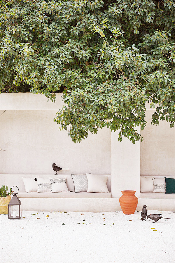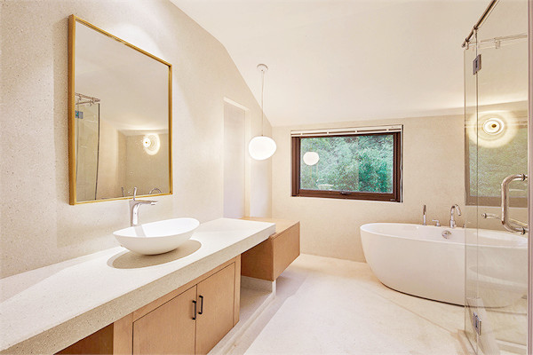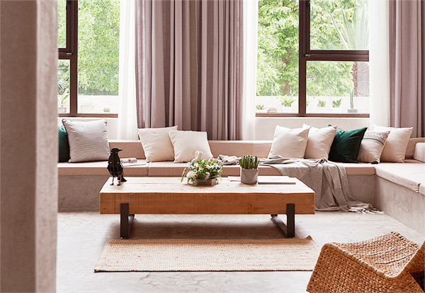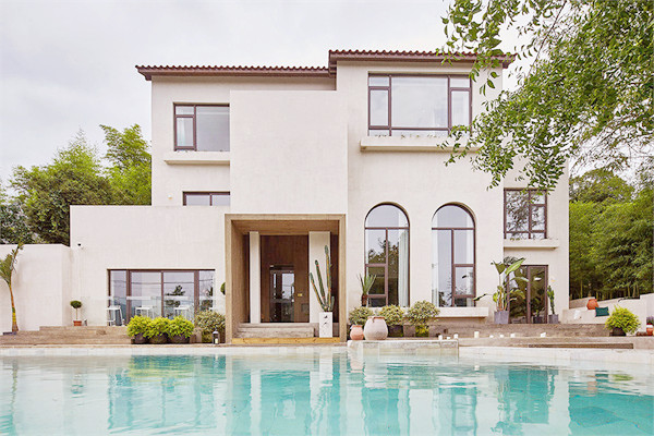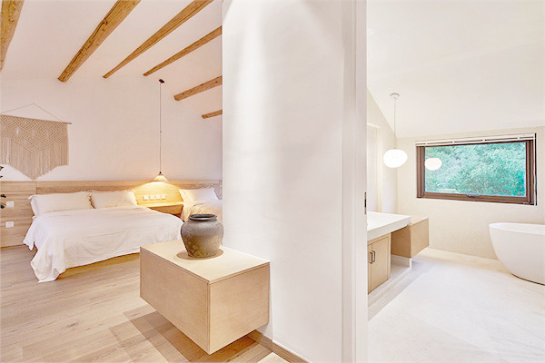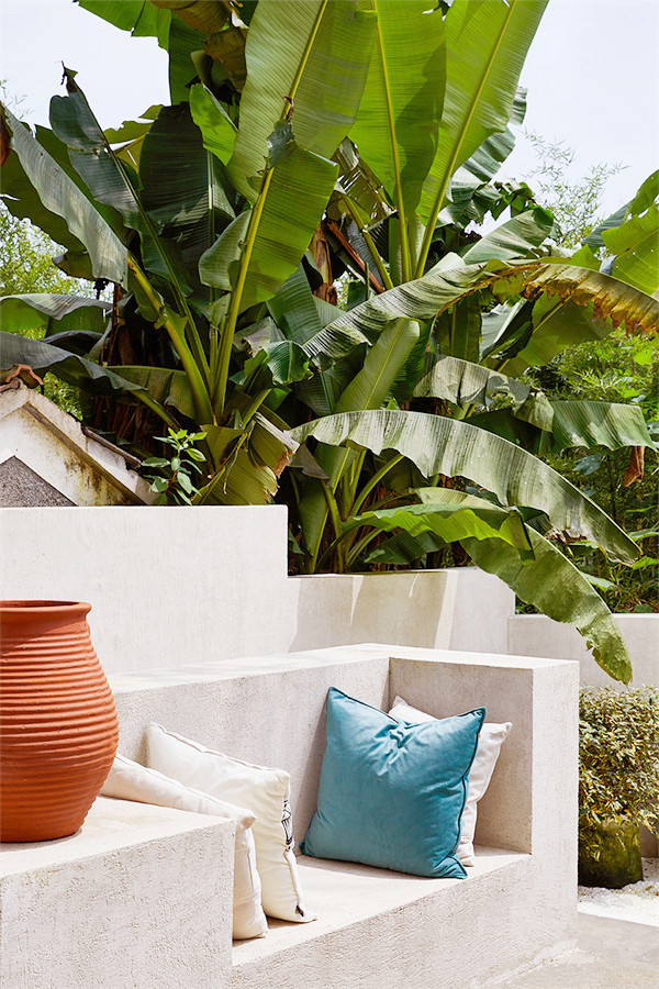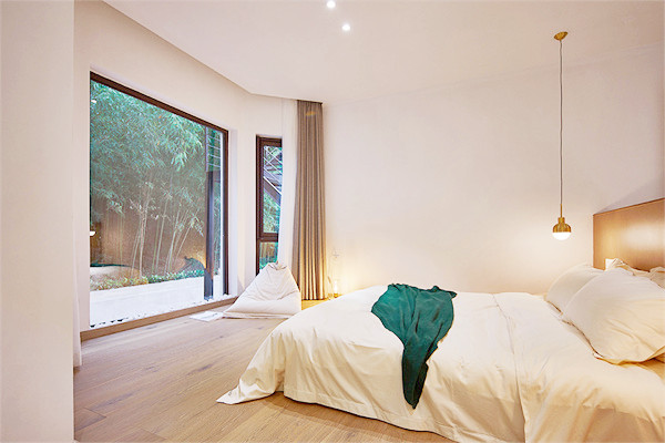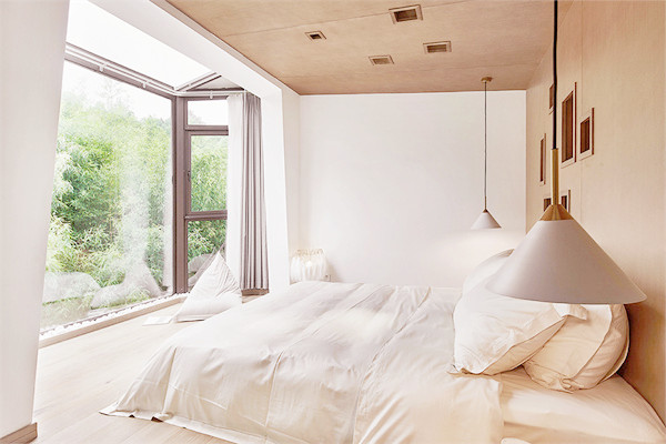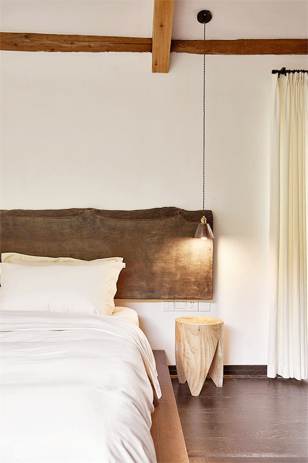 设计师保留了原始的瓦片屋顶与横梁,外墙刷上一层大地色的涂料,置身于周围一片绿色盎然中,显得愈发温柔、沉静。